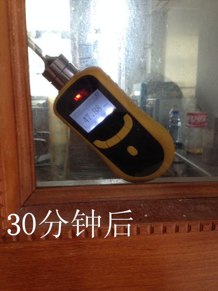 開機20分鐘,使用廣州佳環定做 便攜式臭氧濃度檢測儀  量程為0-100ppm  放在實驗室門口檢測。測出數據如下